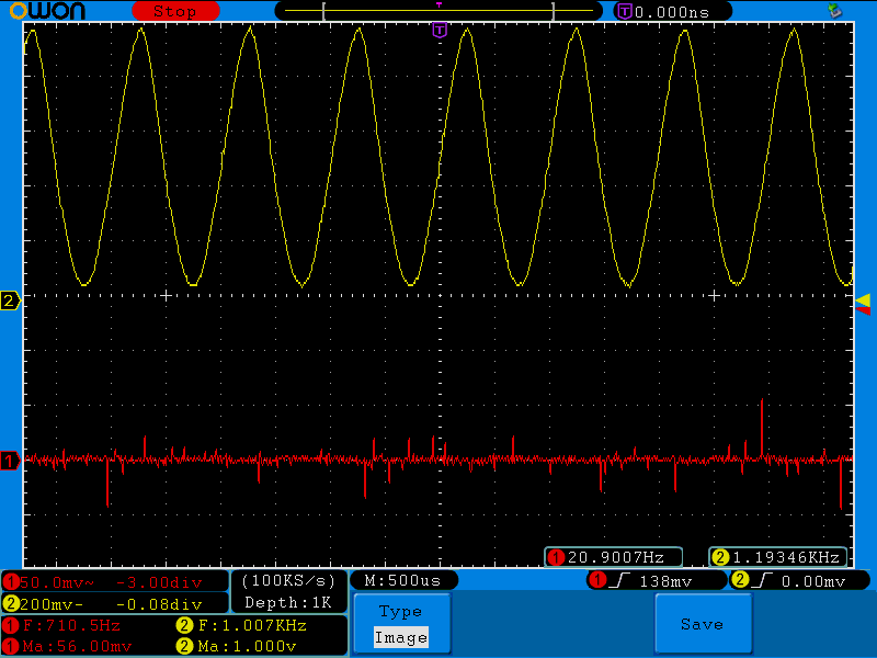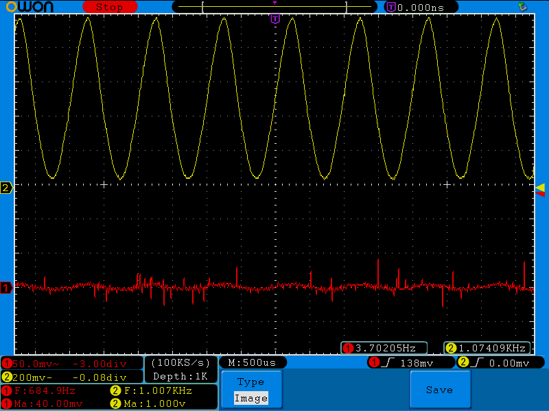 これもうちのオシロでは測定限界下なので、ヘッドホンで聞いてみました。