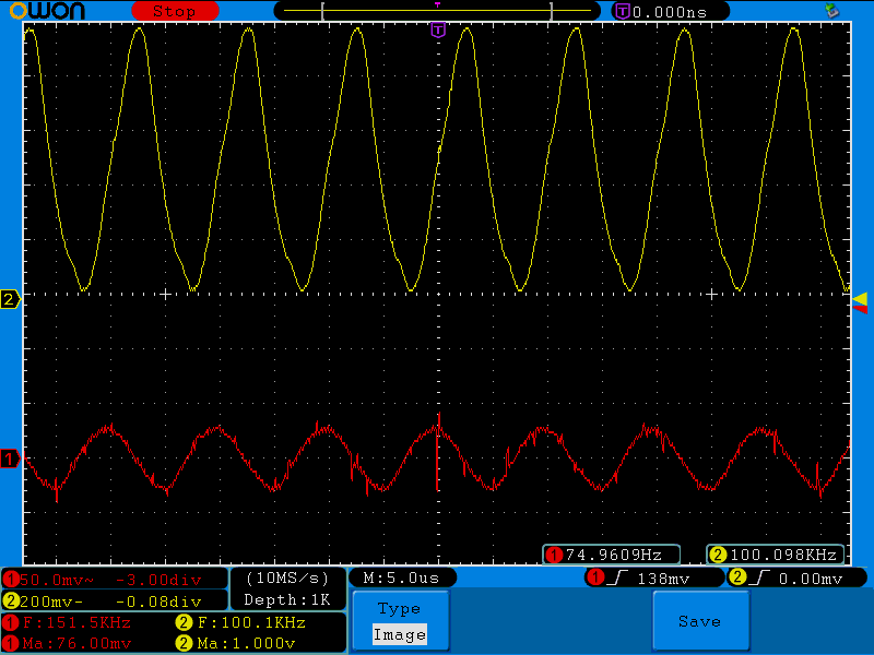※環境ノイズやオシロ自体のノイズ、トランジスタ歪による負荷波形の乱れはご容赦を・・