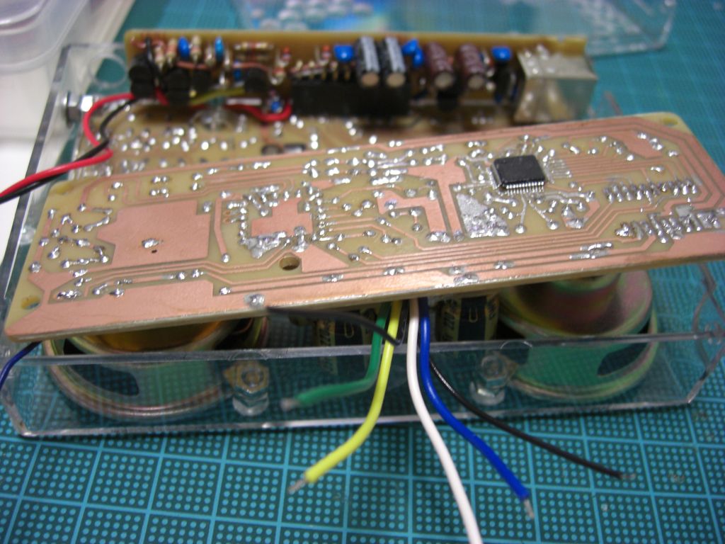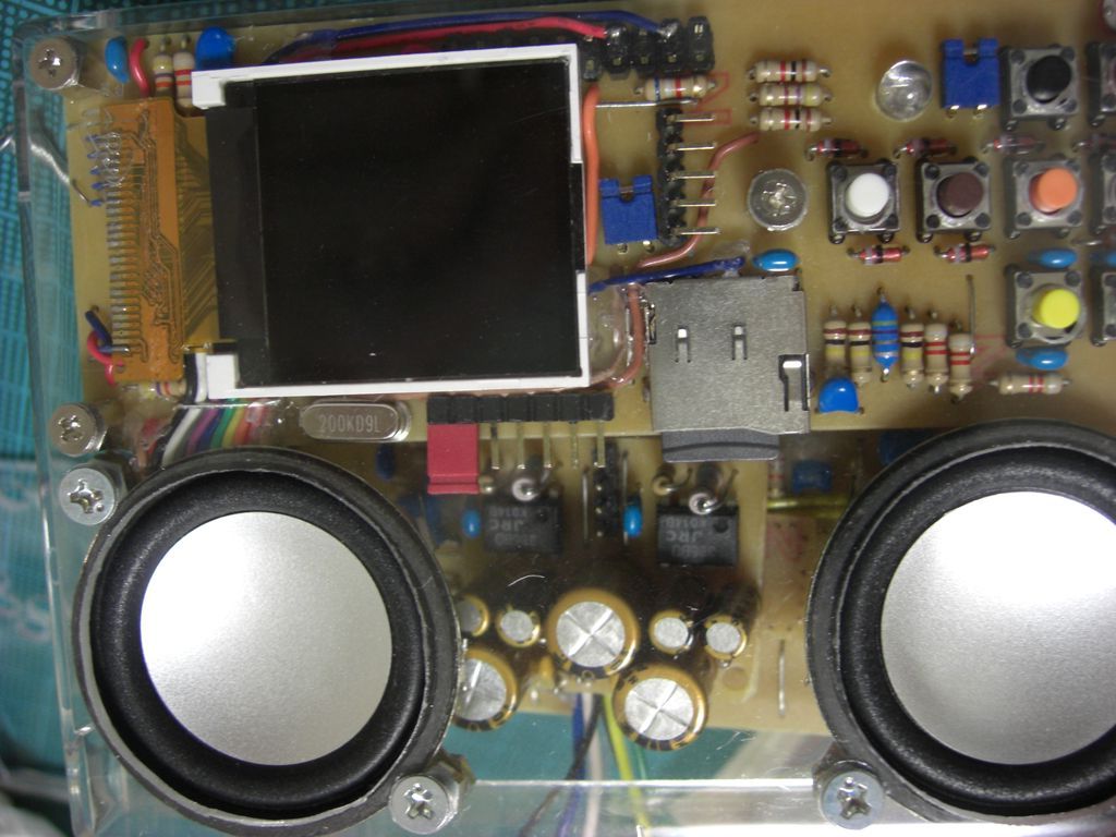 最初にスピーカーを取り付け、基板を取り付けていきます。スピーカの筐体もAGNDに落とします。