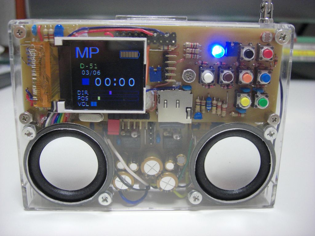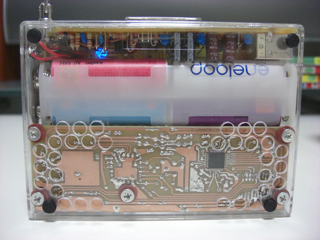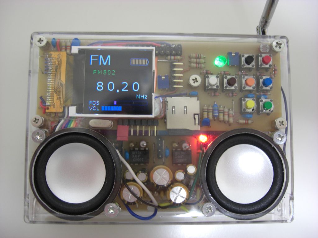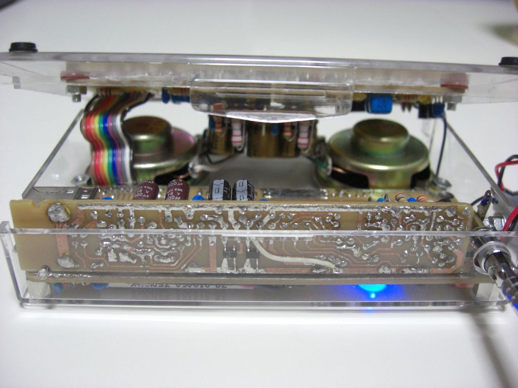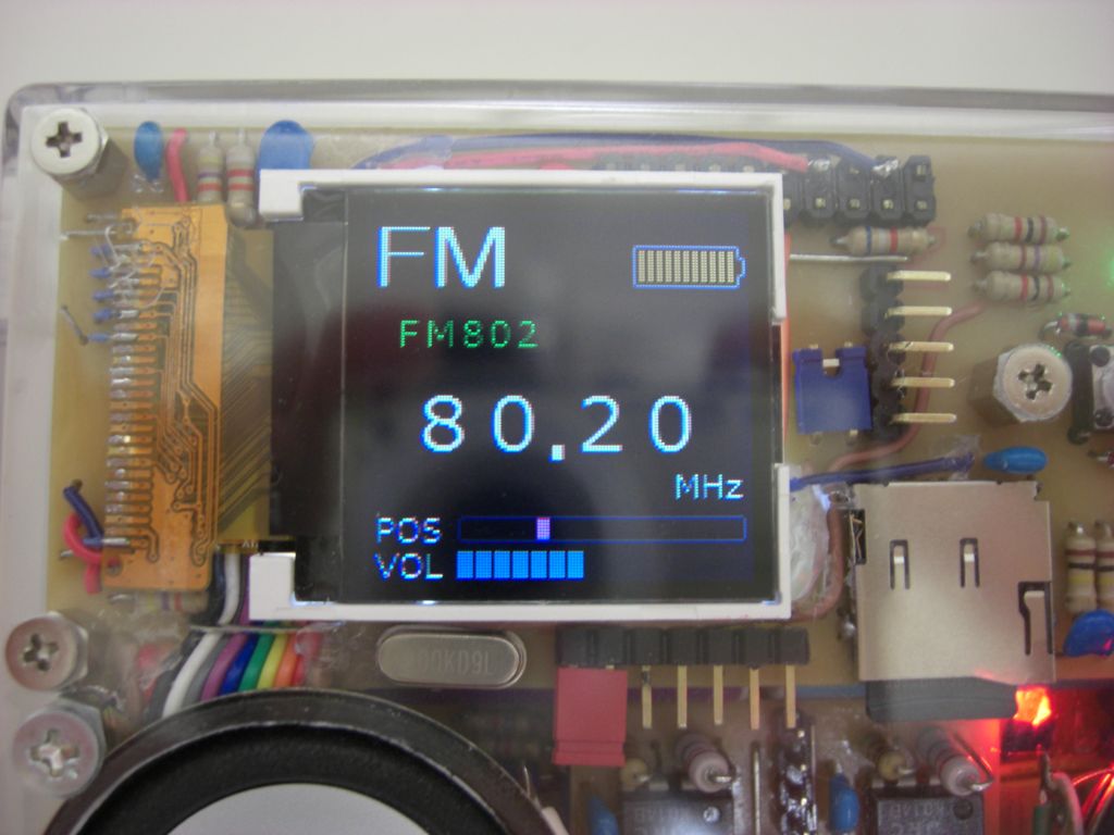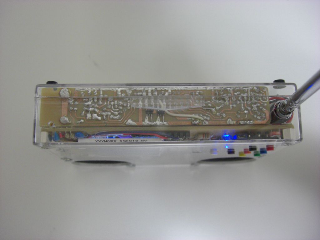 FMの赤いLEDは、RDA5800Cに抵抗で直付けしたステレオインジケータ表示です。