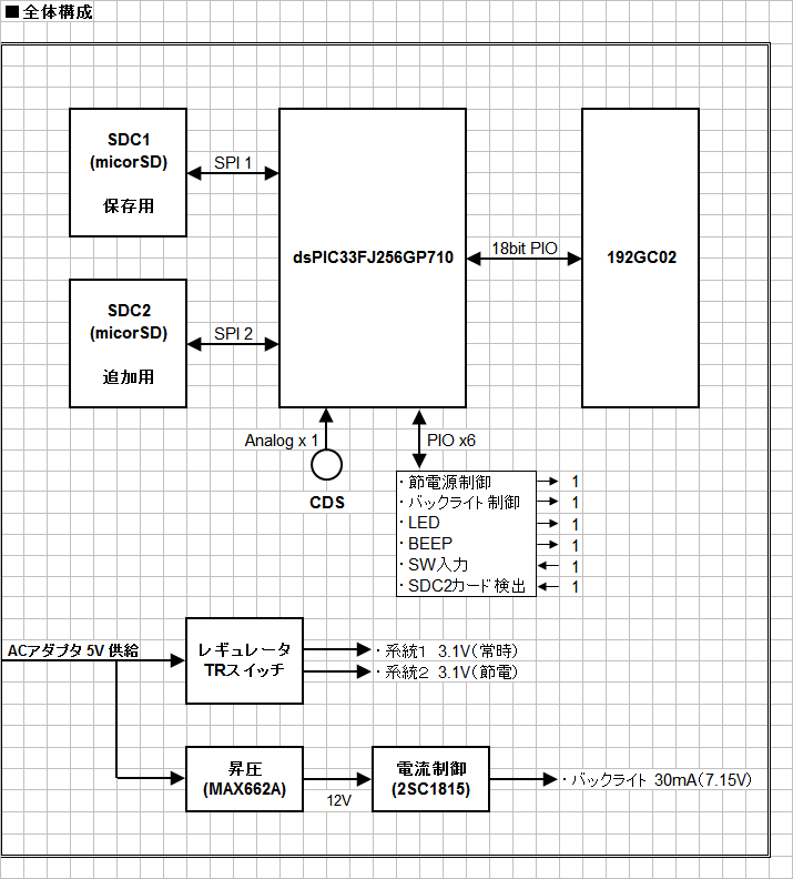 この電圧を、microSD、LCD、PIC へ供給します。
