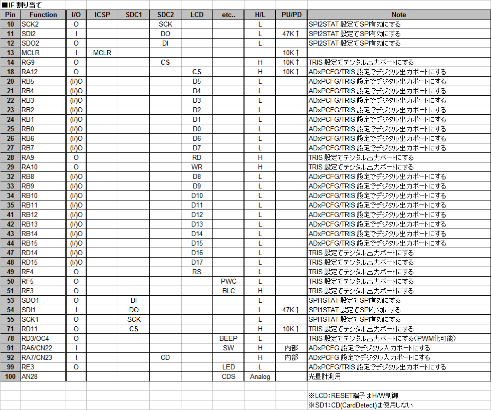 2つのmicroSDを、PICの持つ2つのSPIモジュールへ接続します。