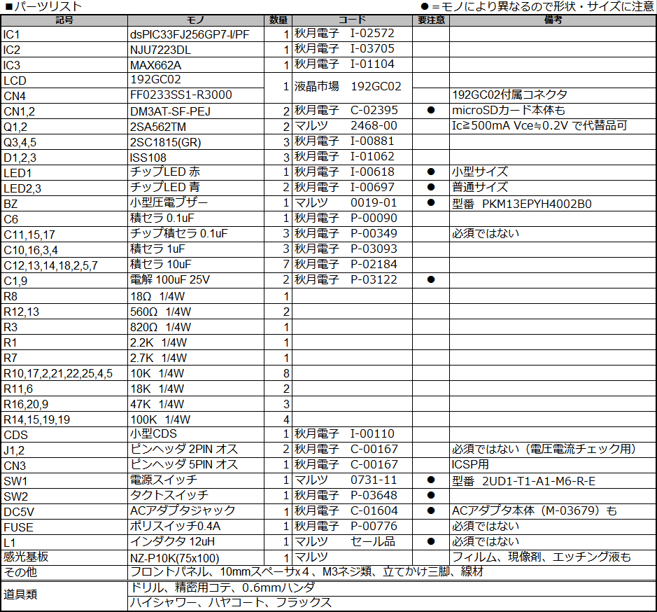 次章で紹介する基板のパターン図をそのまま使う場合、同じ部品ならば良いのですが、
