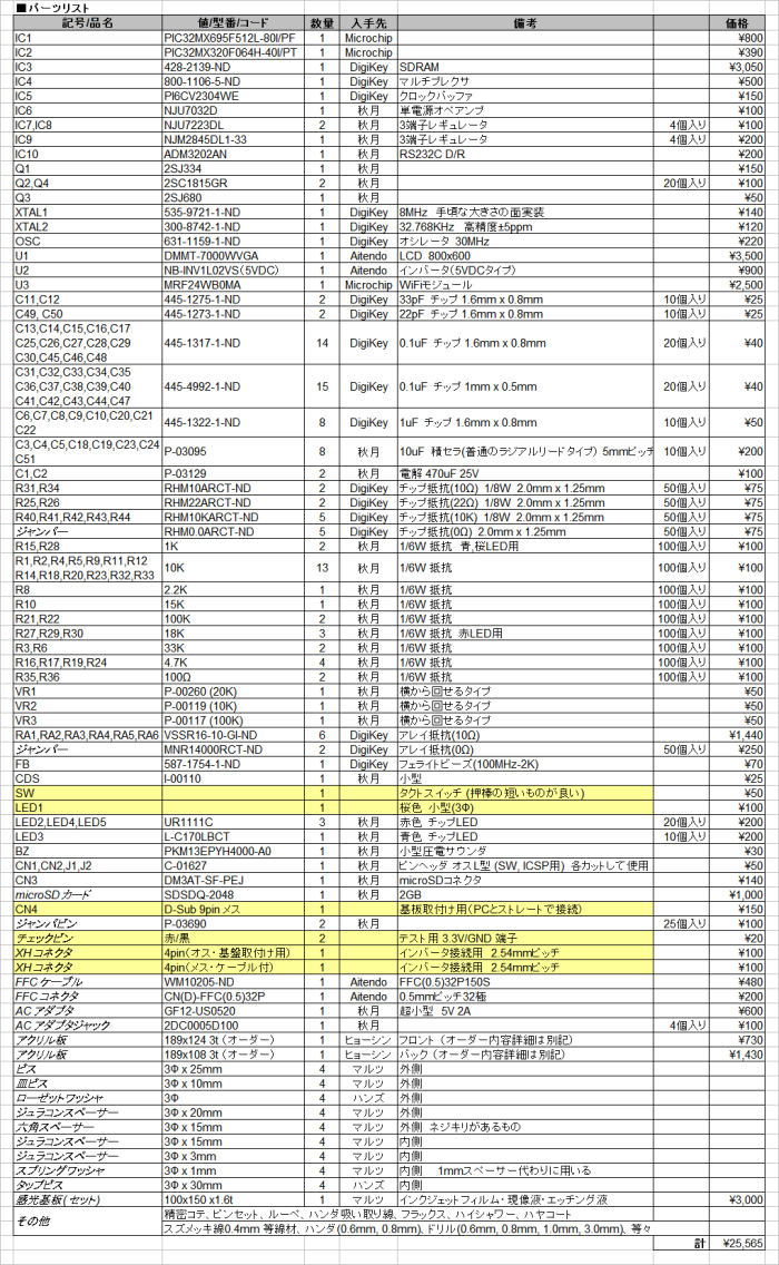 パーツリスト(テキスト版)