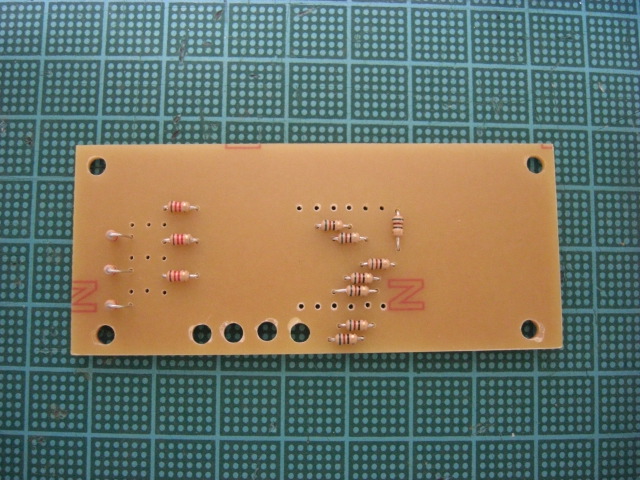 裏面は、トランジスタアレイをハンダ付けした後、線材を付けておきます。