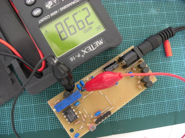 この時点で、通電させても良いので、ハンダ付けをチェック後、電圧のチェックを行います。