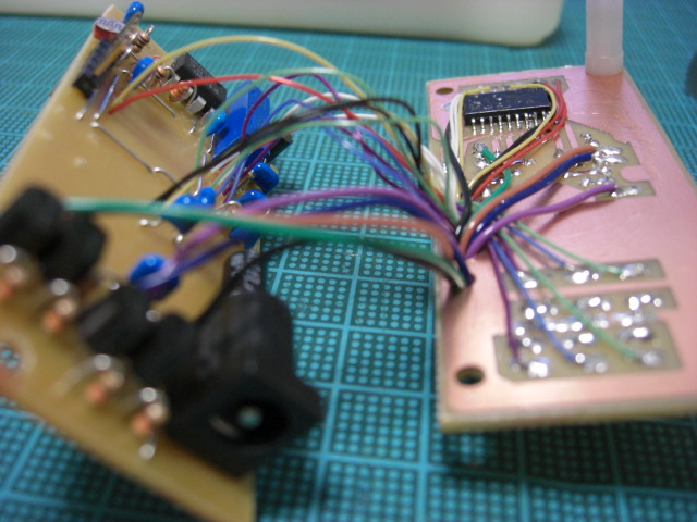 最後に、逸る気持ちを抑えて両基板の配線を行います。