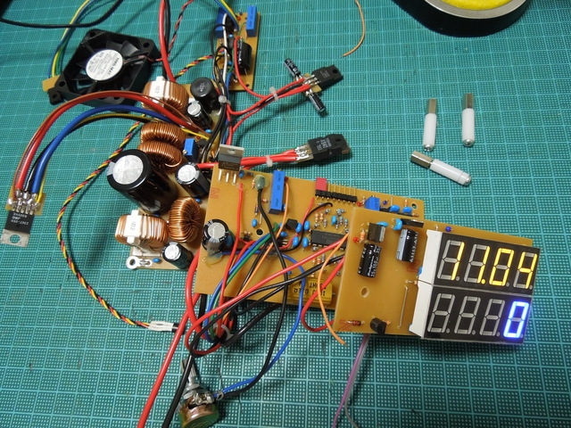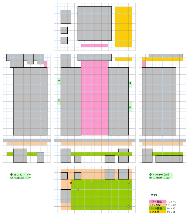 パワー基板の下写真の部分は、ファンに当たるのでメタルスペーサーを用いて、低く仕上げ