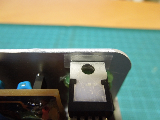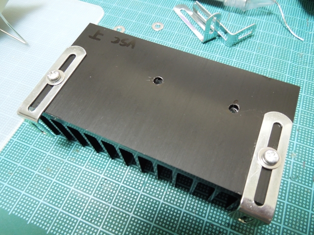 放熱板は、ビスとナットでとめますが、下の写真の様にナットを固定するための工夫をしないと