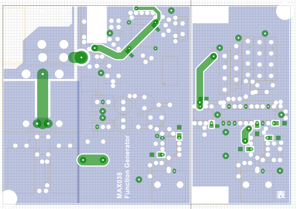 componentレイヤ(緑)のランドは、表で半田付けする部分です。
