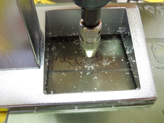 ガラスエポキシ基板だと、ドリル刃がすぐダメになります。0.7mm と 0.8mm それぞれ3本