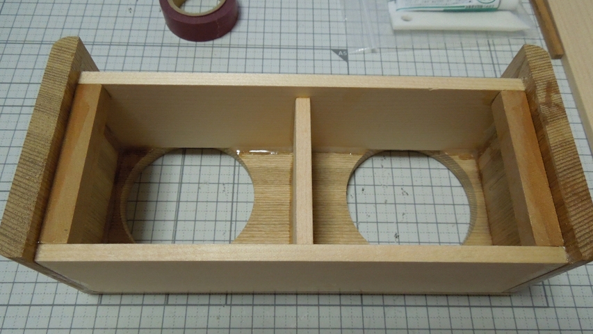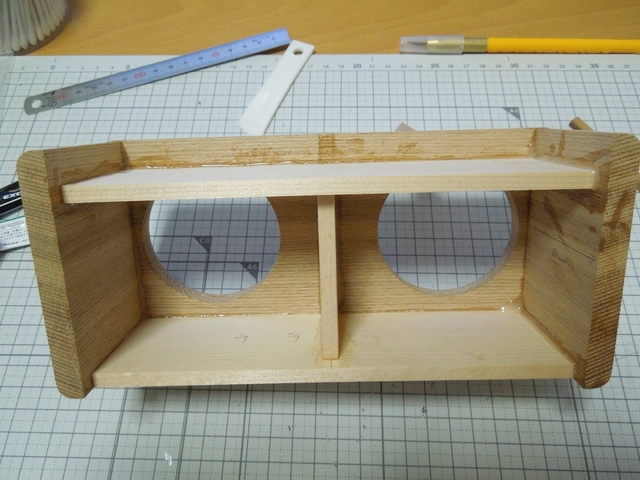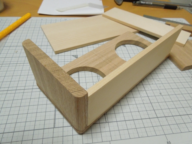他にスプルースも使用していますが、この木材は軽く柔らかいので、外板として使うのは余り適していないように思います。中の仕切り版としては、ズレたりしても何かと無理が利くので、そういう意味では良いです。