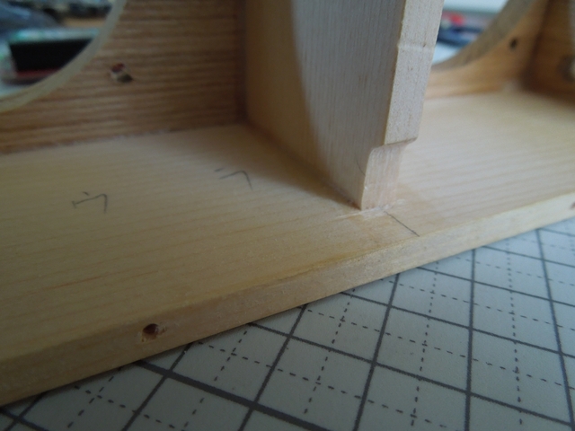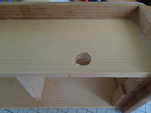 縦仕切り板の下側を削る(ここもケーブルを通し用です)
