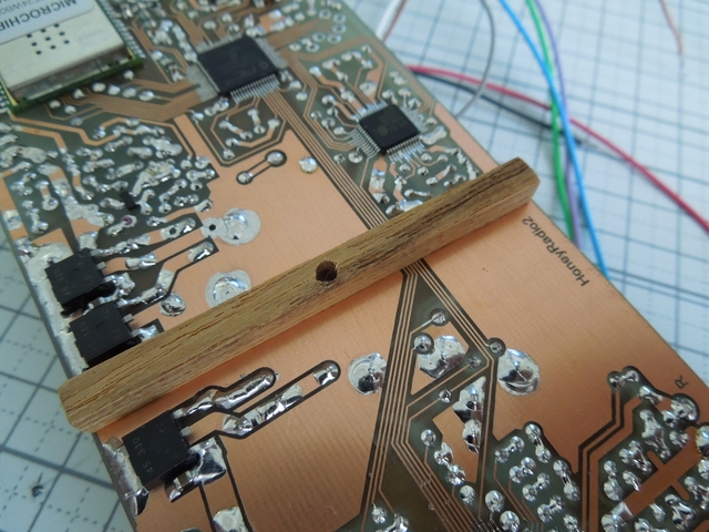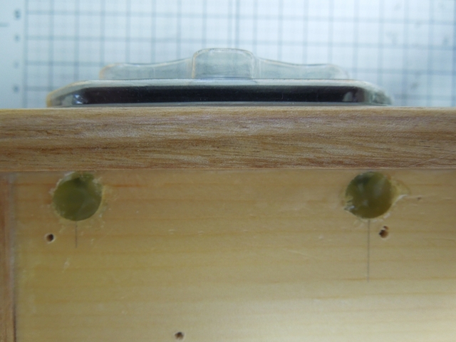 裏板取り付け穴。M2木ネジ用に1.5mm径の下穴を開けておきます。