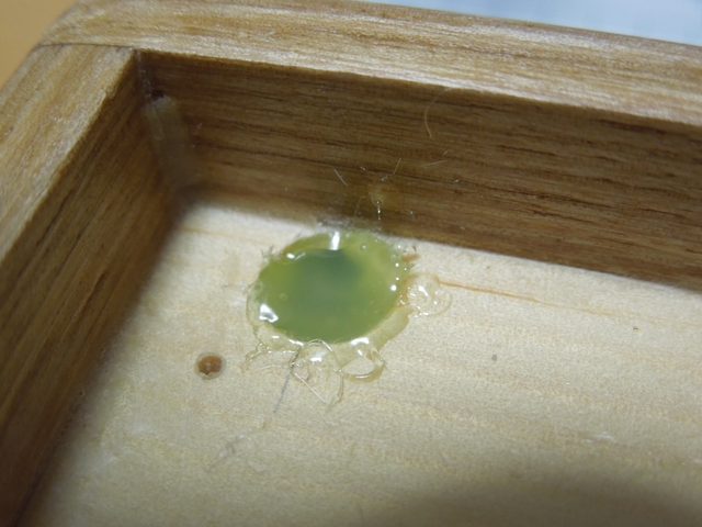 9) 3回目ニスを塗ります。(乾燥2時間)3回目はタレに注意して薄めに塗ります。