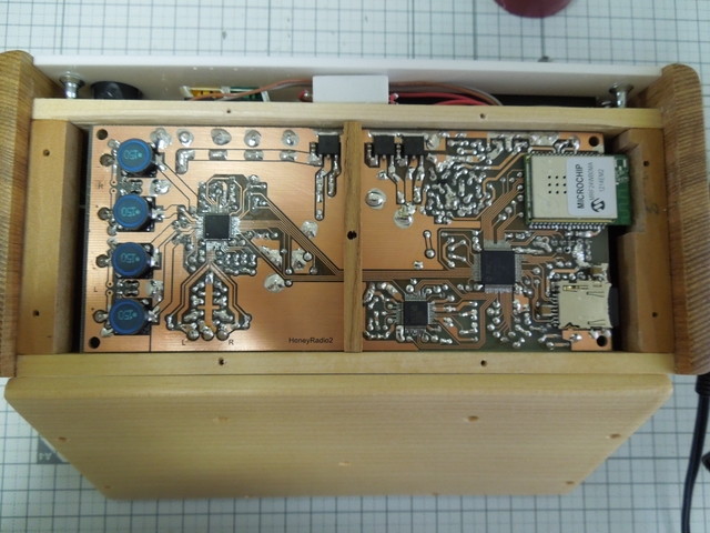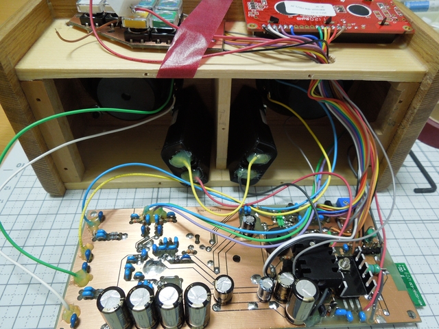 基板だけの状態で、一通り配線して動作確認後、組み立てを行います。