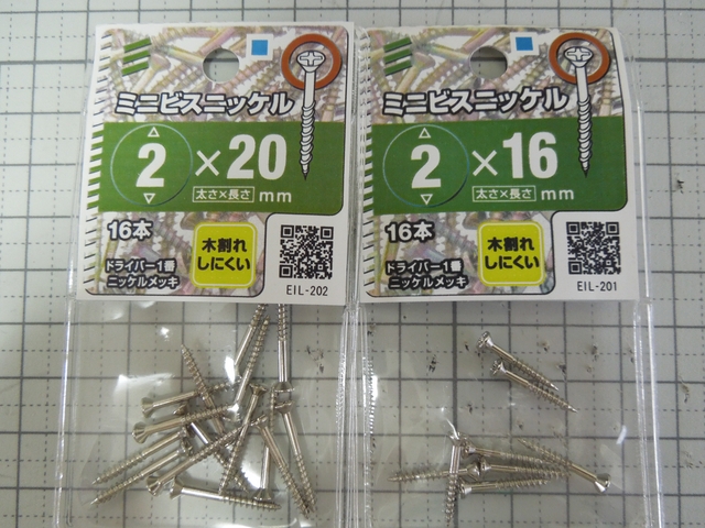 ・木ネジ:皿頭M3x15, M2x15, ミニビスM2x16, ミニビスM2x20