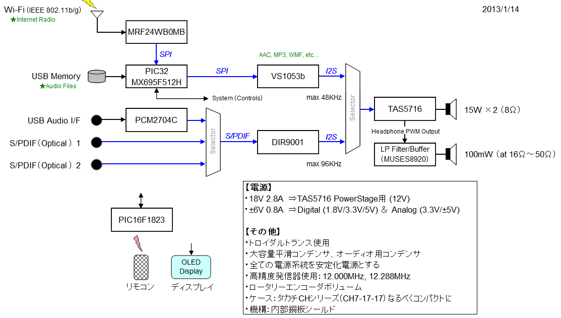 というわけで、現在下図の構成で設計しております。⇒製作完了しました。下図は最終版です。