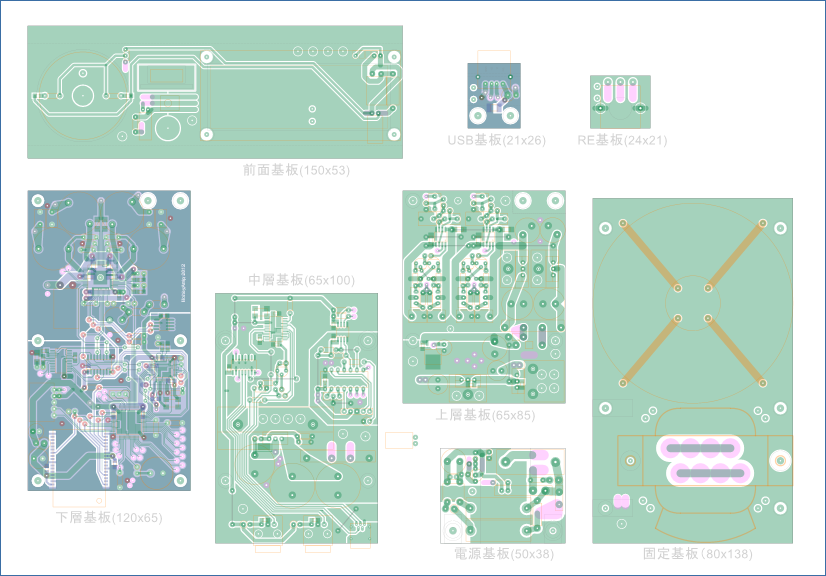 今作では、補助基板も含め全部で8つの基板を使用します。