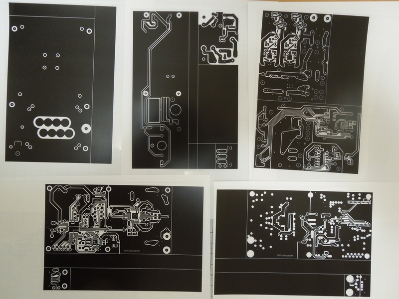 下記の要領でモノクロで印刷して下さい。(両面基板では、表と裏の2パターンが必要です)