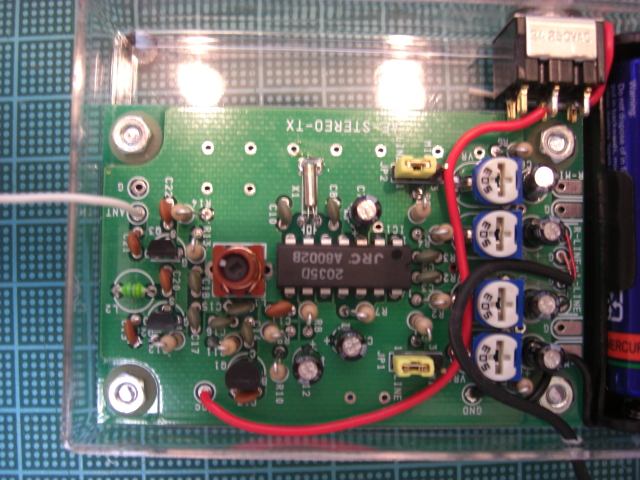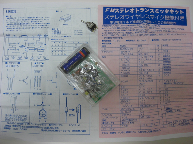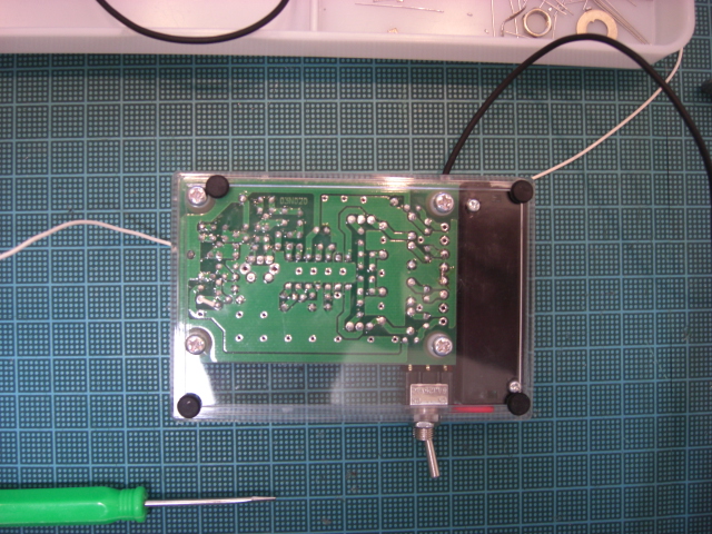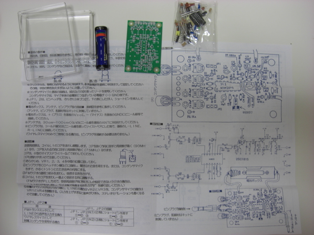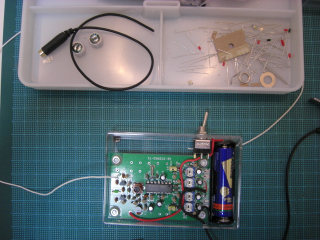マイク2つにポリカーボネートケース、電池、両面ガラスエポ・・
