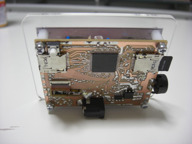 4) それぞれ四隅に穴を空け、パネルと、スペーサー(基板)とネジ止めする。