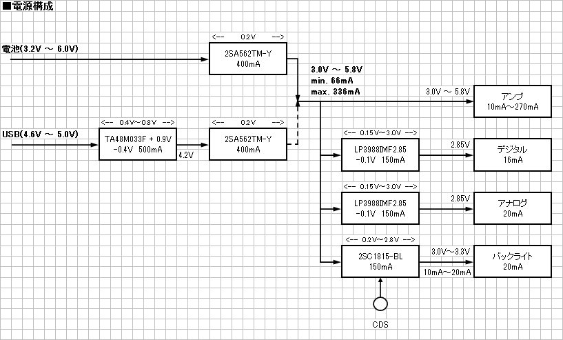 電源は、デジタル系、アナログ系、そのまま系の、三系統に分離しました。