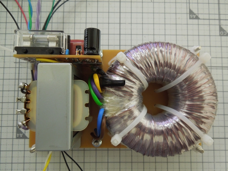 トロイダルトランスは、特に配線(各色)の誤りが無いように注意します。
