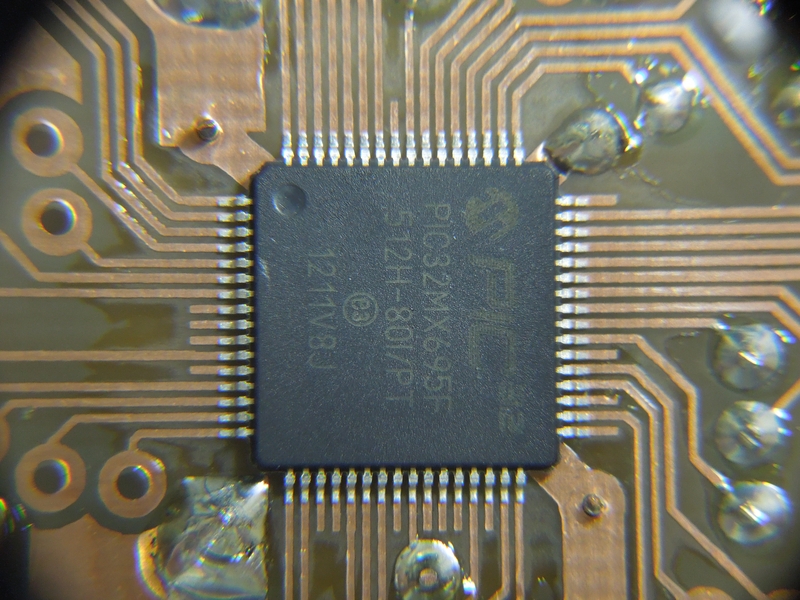 PIC32MX695F512H のハンダ付けです。他のチップも同様です。